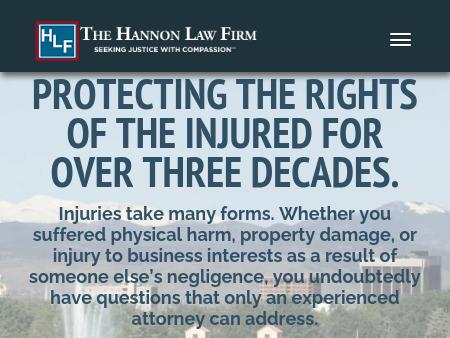 57. The Hannon Law Firm, LLC Denver CO Personal Injury Attorney | Colorado Environmental Law Lawyer The attorneys at The Hannon Law Firm, in Denver, Colorado, represent victims of personal injuries or toxic chemical exposure.