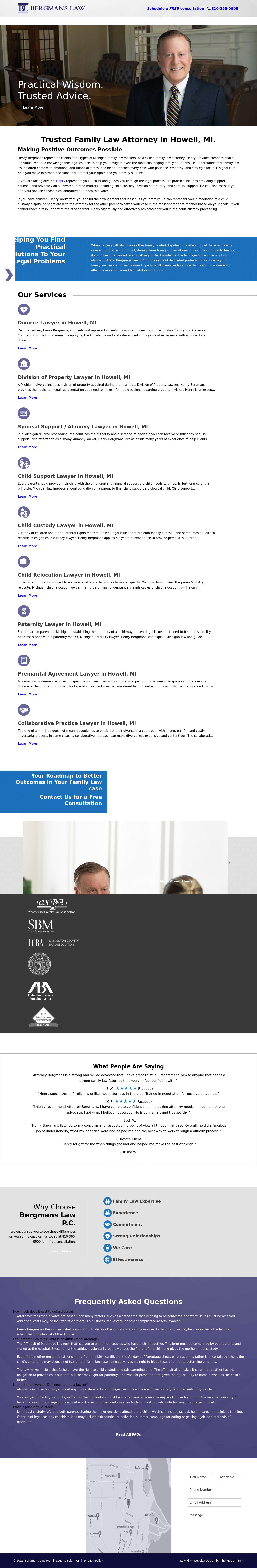 Bergmans Law P.C. Howell MI Family and Divorce Lawyer | Child Support and Custody Attorney Contact Bergmans Law P.C. for high-quality family law legal representation in Michigan. Call our office in Howell today at 810-222-5703.
