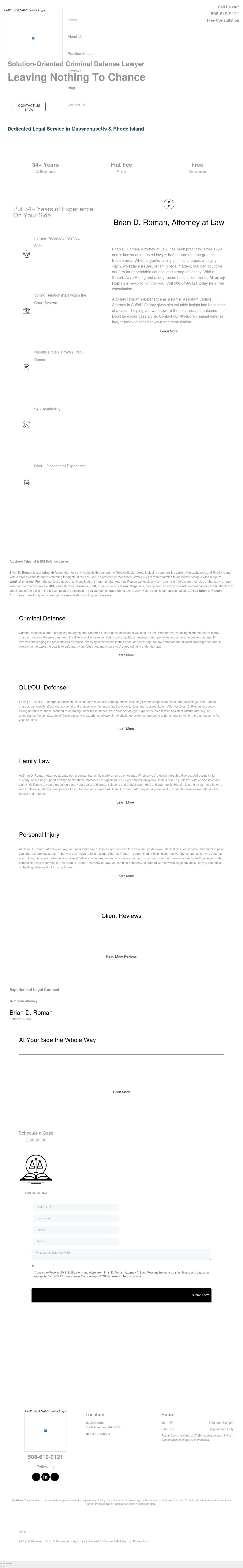 Brian D. Roman, Attorney at Law Attleboro Criminal Defense Attorney | Taunton MA Family Lawyer | Wrentham Need experienced Massachusetts criminal defense or other legal services? Contact Attleboro attorney Brian D. Roman. Free consultation 508-534-8159.