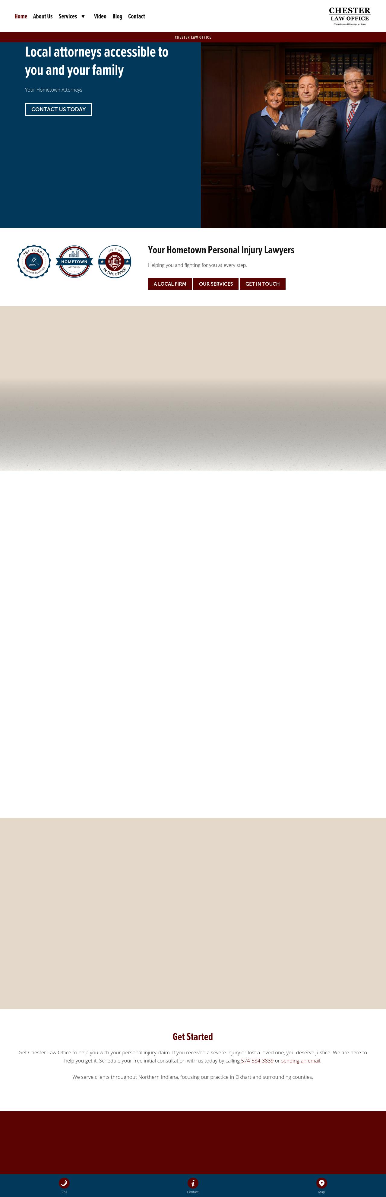 Chester Law Offices Personal Injury and Wrongful Death Attorneys | Chester Law Office | Elkhart, IN HOME At Chester Law Office, our philosophy is simple: we help accident victims receive fair and reasonable compensation from the responsible party. For more than 25 years, our practice has focused on helping people in Elkhart County obtain fair compensation from insurance companies.