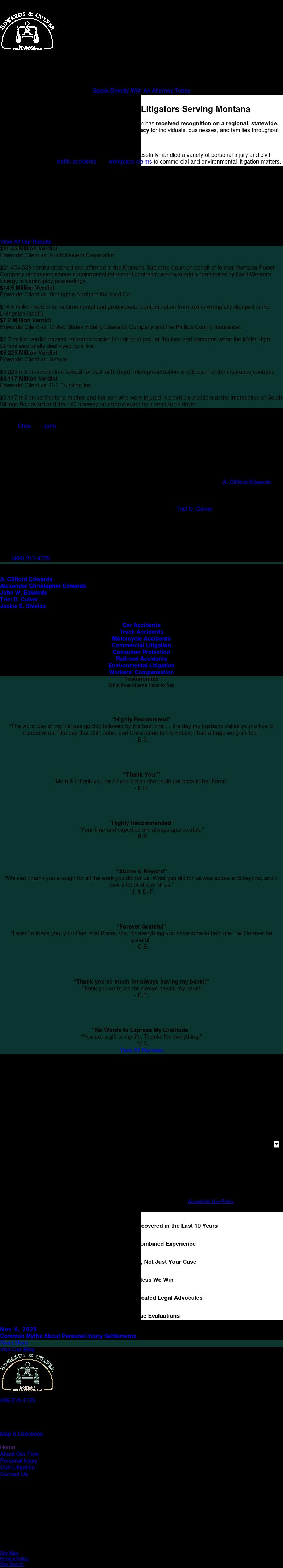 Edwards & Culver Montana Injury Lawyer | Billings Wrongful Death Attorney | Helena Car Accident Law Firm Free consultation. Contact Edwards & Culver in Billings if you were injured in a car accident, on the job, or while working on an oil rig in Montana or North Dakota. Represented clients with the recent Yellowstone River oil spill near Laurel, Montana.