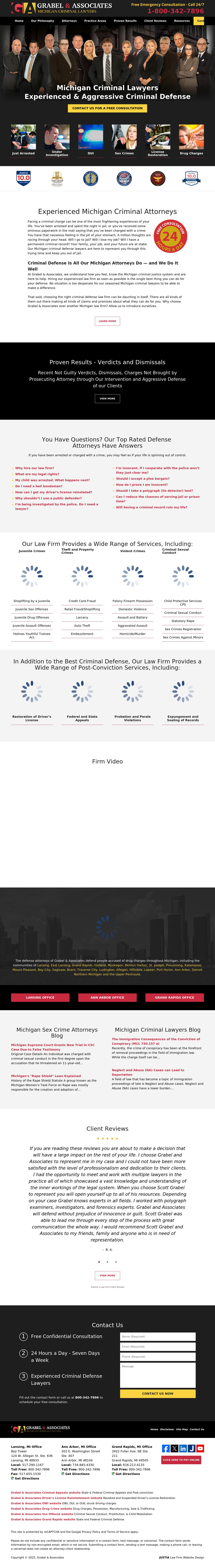 Grabel & Associates Michigan Criminal Attorney - Michigan Criminal Defense Lawyers in Lansing, Detroit, Ann Arbor, Grand Rapids - 24 hours - 1-800-342-7896 Free consultation with experienced Michigan criminal defense attorneys defending against felony, misdemeanor, and juvenile charges statewide. Call 800-342-7896. We are available 24 hours 7 days a week.