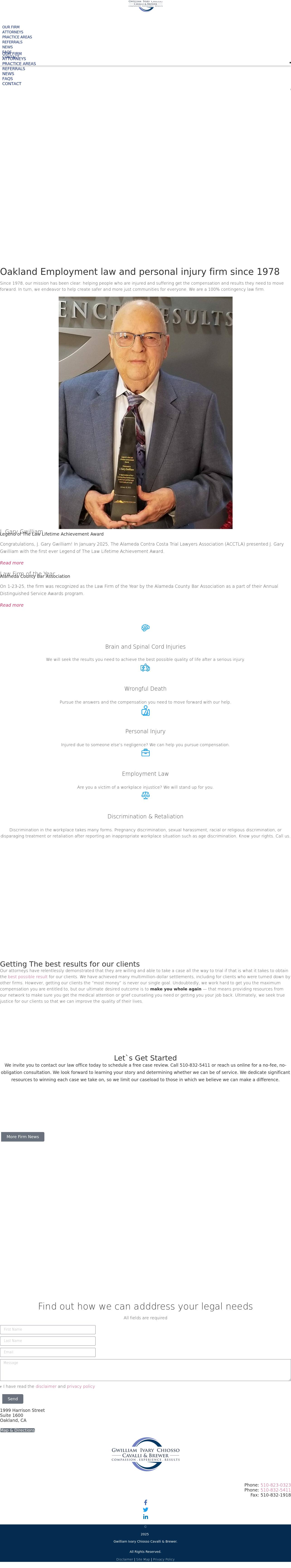 Gwilliam Ivary Chiosso Cavalli & Brewer Oakland Personal Injury Lawyers | Employment Law Attorneys | Wrongful Death Alameda County Walnut Creek Gwilliam, Ivary, Chiosso, Cavalli & Brewer is an Oakland, Bay Area law firm dedicated to representing people with complex personal injury, medical malpractice, wrongful death, employment, business, and consumer law cases. Call 510-832-5411 to arrange a free consultation.