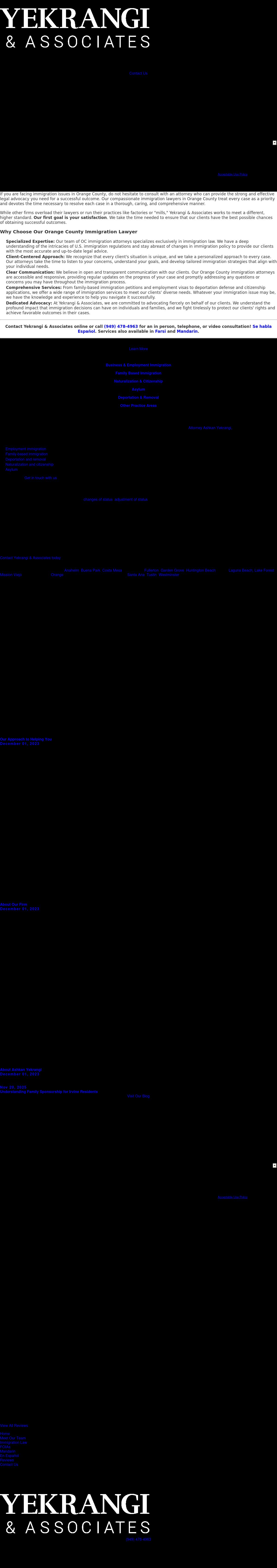 Law Office of Ashkan Yekrangi Orange County Immigration Attorney | Law Office of Ashkan Yekrangi If you need one-on-one legal assistance from a skilled Orange County immigration attorney, call the Law Office of Ashkan Yekrangi. We make sure your rights are protected!