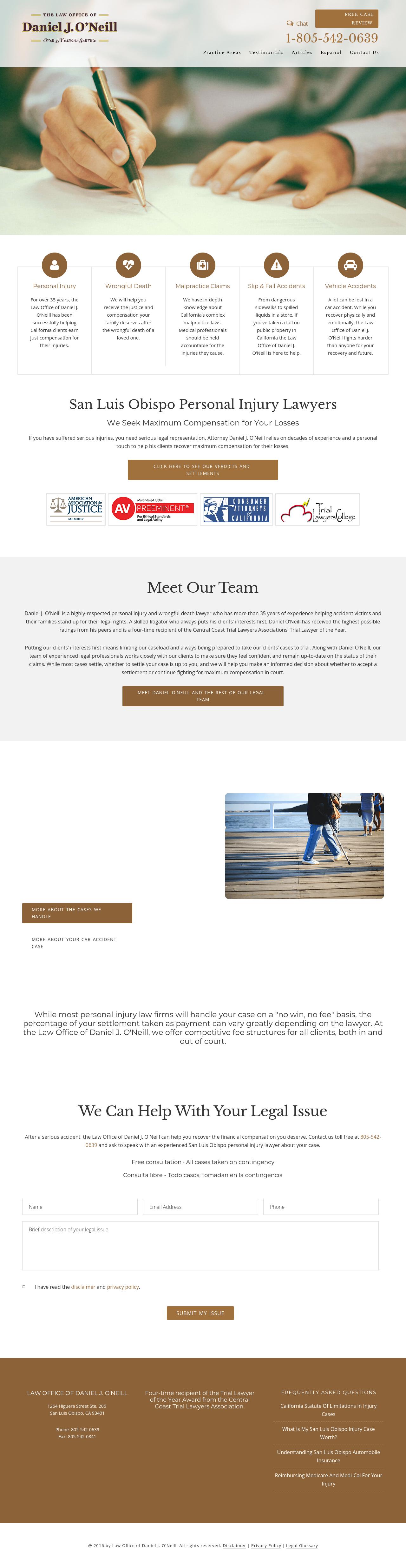 Law Office of Daniel J. O'Neill San Luis Obispo Personal Injury Lawyer | Santa Maria Car Accident Attorney To speak to a personal injury lawyer about your potential case, call the Law Office of Daniel J. O'Neill in San Luis Obispo, CA, at 805-762-4761.