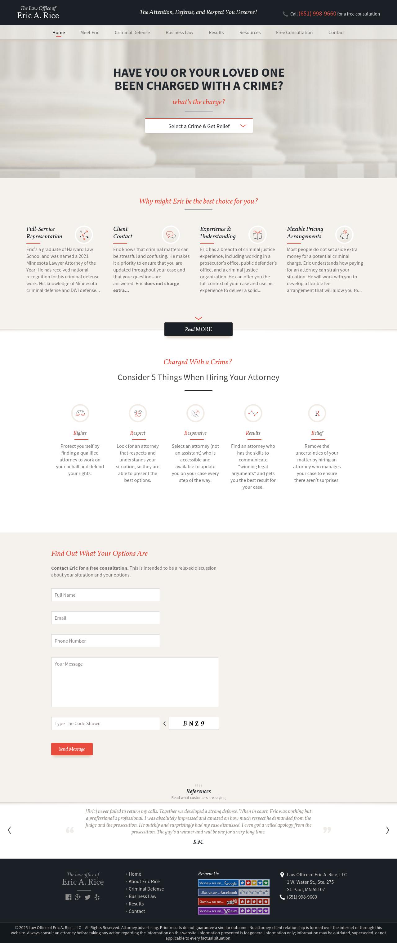 Law Office of Eric A. Rice, LLC St. Paul & Minnesota Criminal Defense Lawyer & DWI Defense Attorney St. Paul Criminal Defense Attorney and DWI Defense Attorney Eric Rice is a Harvard graduate. He has years of experience in criminal law, legal advice and in