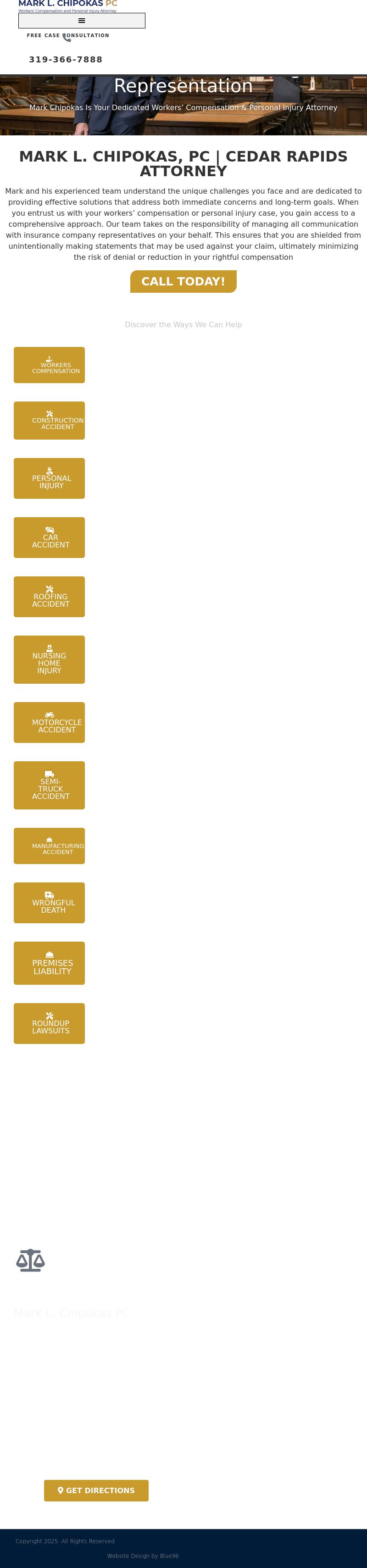 Mark L. Chipokas PC Cedar Rapids Workers Compensation Attorney | Iowa Personal Injury Lawyer | Linn County Criminal Defense Iowa personal injury attorney. Mark L. Chipokas PC. More than 20 years of experience. Call 319-423-8011. Free initial consultation.