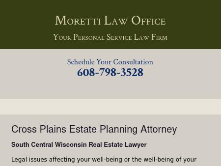 Moretti Law Office Cross Plains WI Estate Planning Lawyer | Wisconsin Elder Law Attorney | Dane County Real Estate For experienced legal advice in the Cross Plains, Wisconsin, area, call the Moretti Law Office at 608-370-5944.