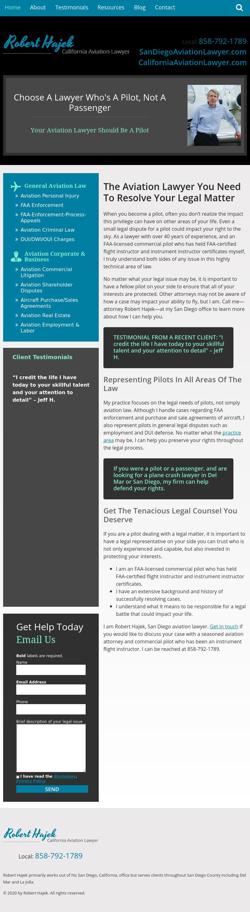 Robert Hajek Aviation Attorney San Diego | Plane Crash Lawyer Del Mar, La Jolla If you are a pilot and looking for an attorney, contact Robert Hajek in San Diego by calling 877-264-8950. He handles all types of legal cases, including DUIs.