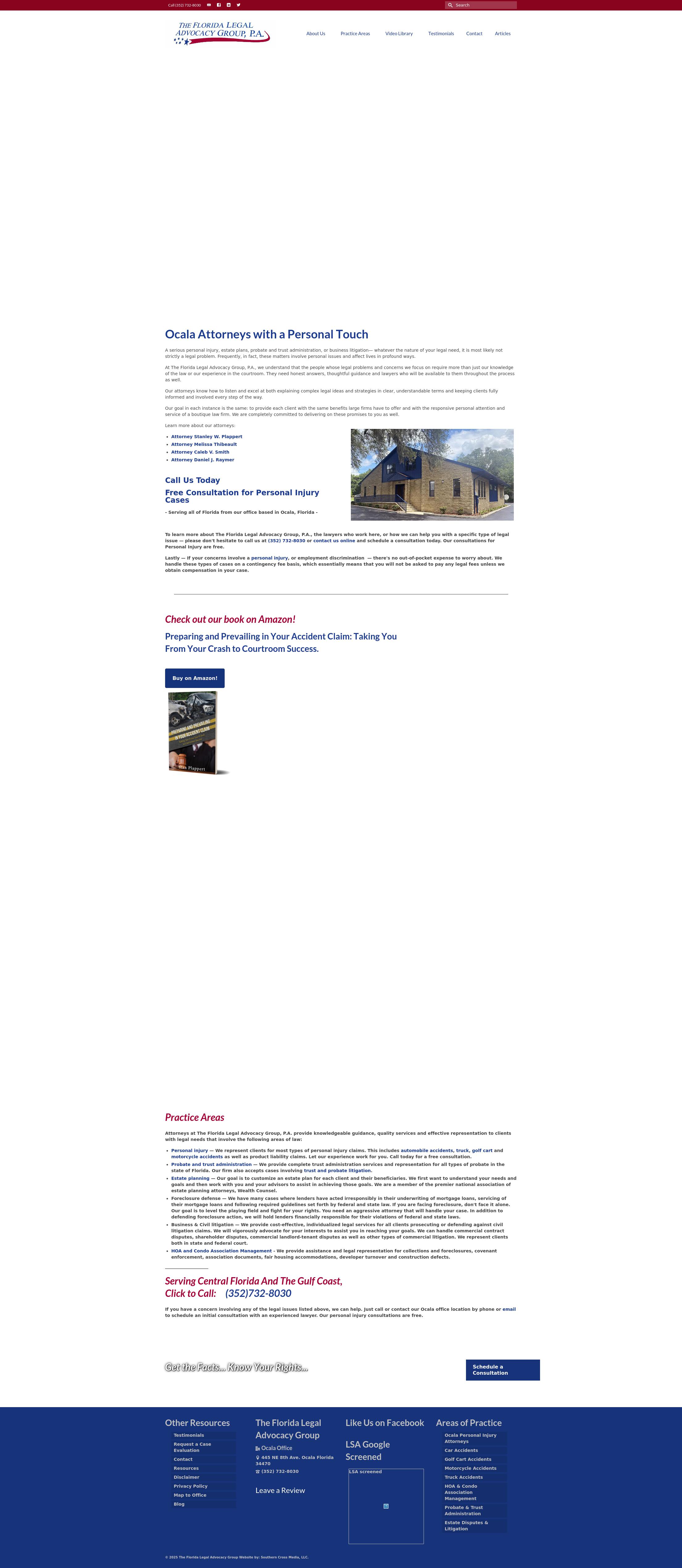 The Florida Legal Advocacy Group, P.A. Ocala Personal Injury Lawyer | Probate Court Cases | Motorcycle Crashes For the answers, personal attention and tenacious legal representation you need, call The Florida Legal Advocacy Group, P.A., at 800-474-1680. Ocala.