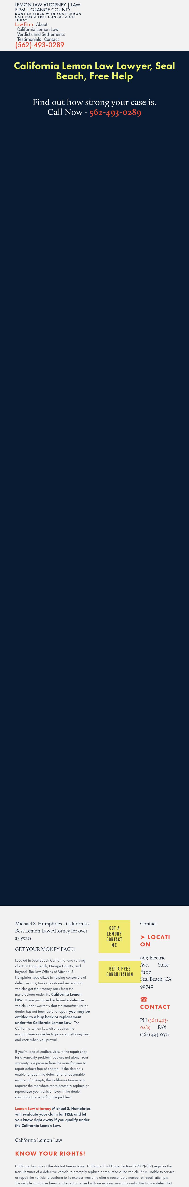 The Law Offices of Michael S. Humphries California Lemon Law Lawyer | Los Angeles Defective Product Attorney | Orange County Consumer Protection Law Firm Call Los Angeles, California, lemon law lawyer Michael S. Humphries at (562) 493-0289.