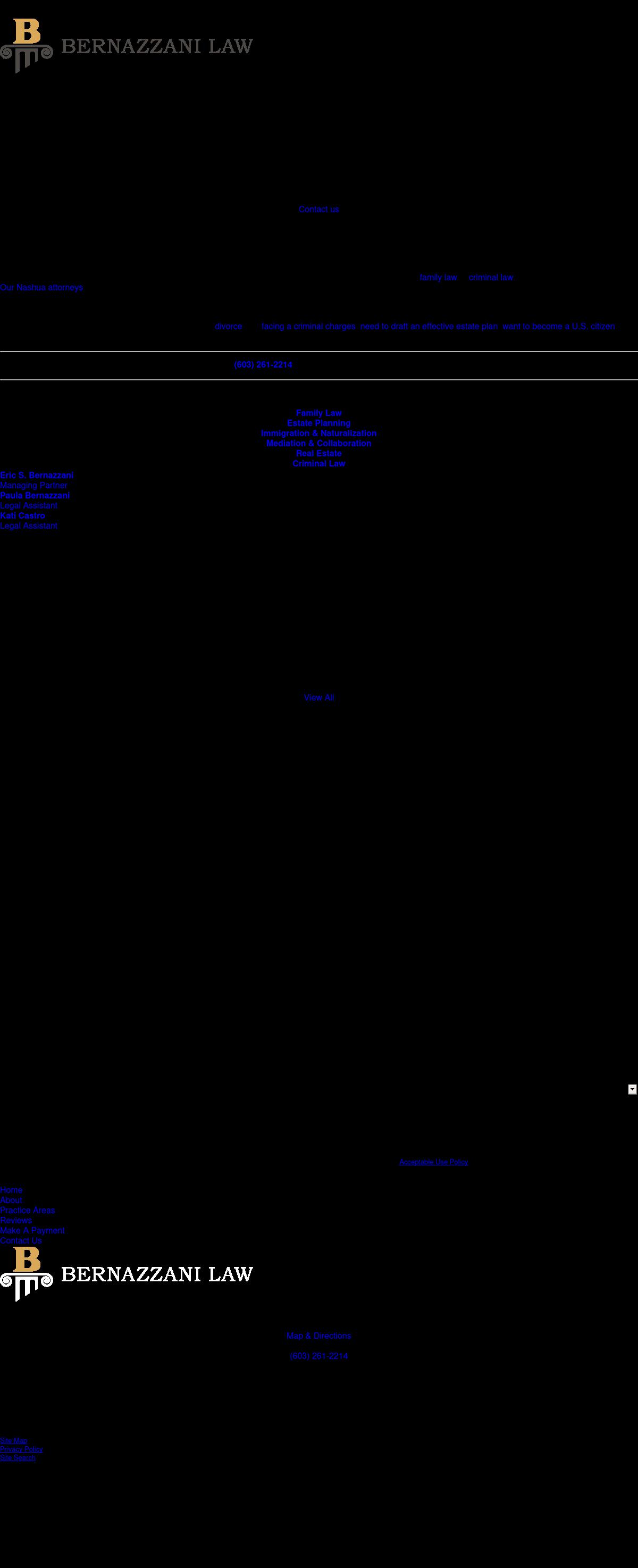 Wolfson & Bernazzani, PLLC Nashua New Hampshire Family Lawyer | Divorce & Estate Planning Family law, immigration or estate planning issue in Nashua, New Hampshire, or nearby? Call Wolfson & Bernazzani, PLLC, for a consultation at 603-272-6008.